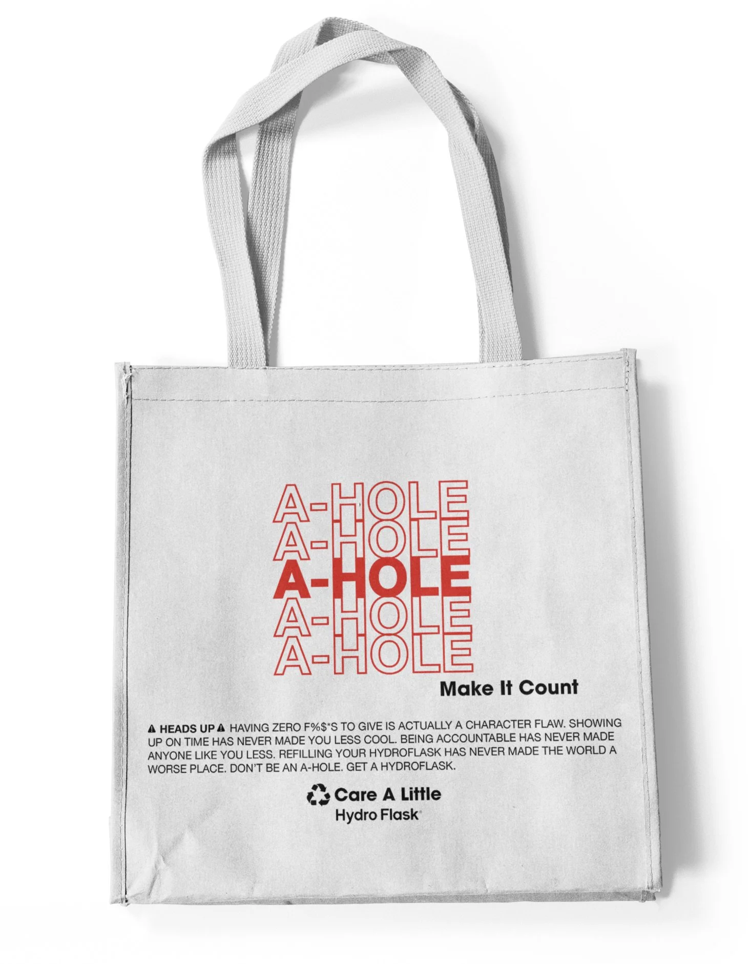 In an age where the selfishness of not caring is promoted with childish phrases such as, “Zero f*cks to give,” Hydroflask is promoting selfless responsibility. Because not caring is the attitude that gave us oceans filled with plastic bottles. Being apathetic to everything is actually a character flaw, being accountable has never made anyone like you less. So Care a Little, get a Hydroflask.